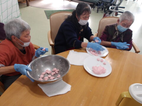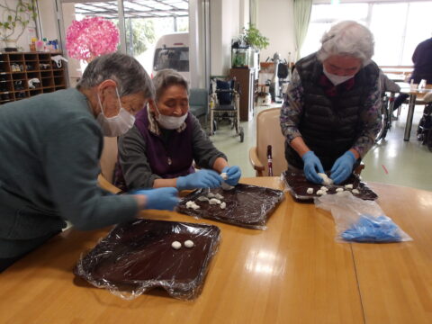 ご利用者様の要望で「紅白白玉お汁粉作り」