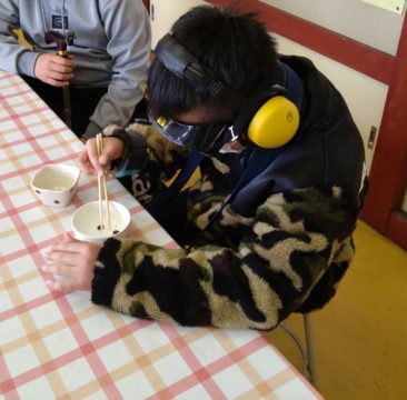 アイマスク(白内障:視界の悪さ)とヘッドホン(難聴:聞こえにくさ)、
