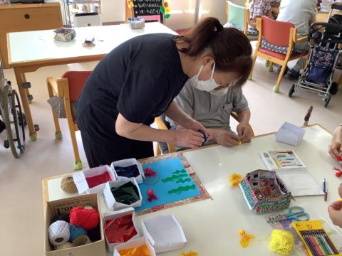 先ほど丸めたティッシュをセロハンで包み、ひもで
