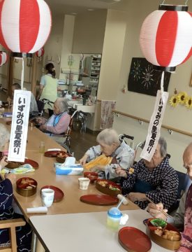 職員も一緒に浴衣を着たかったなー。弁当作りやゲームの準備、利用者様の着付けなど、祭りを盛り上げるためにバタバタしていたら着そびれちゃいました。