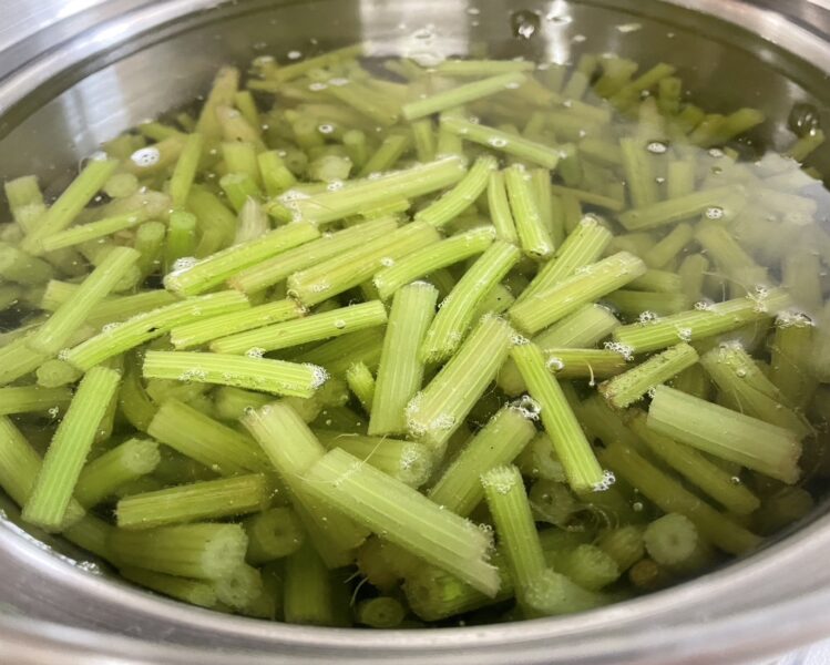 軟らかくゆでた後、炒め煮にして、この日の夕食の一品になりました。