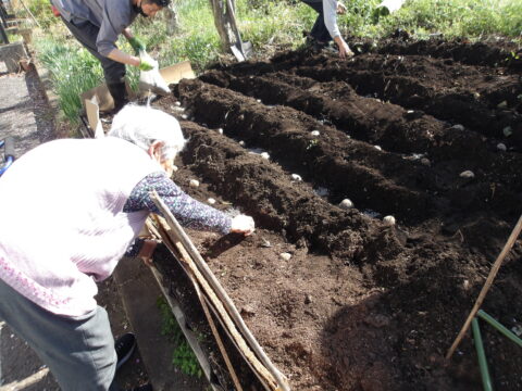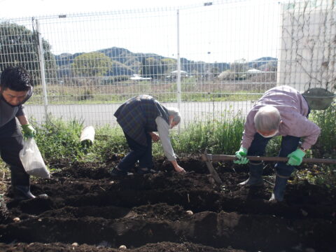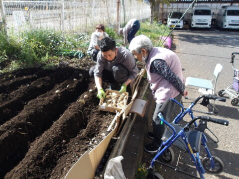 先日、ご利用者さまと一緒に種芋植えを行いました。